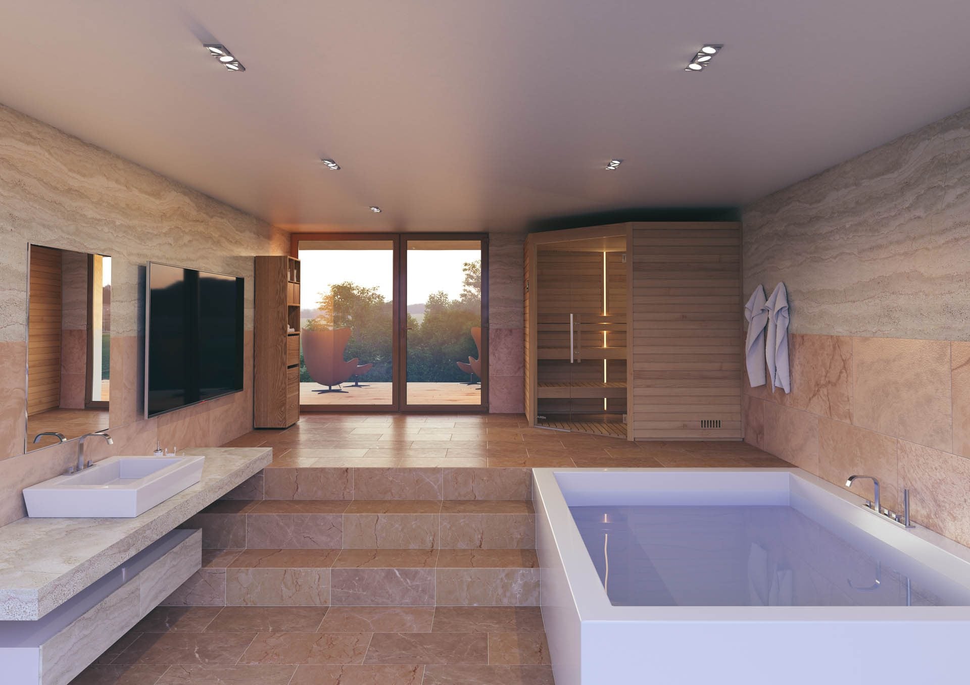 - Värmebeständiga LED-remsor på insidan av bastuväggarna